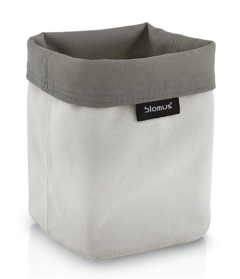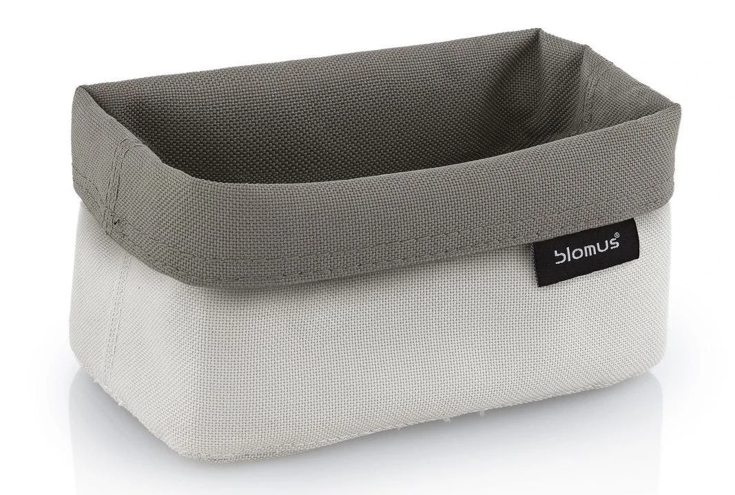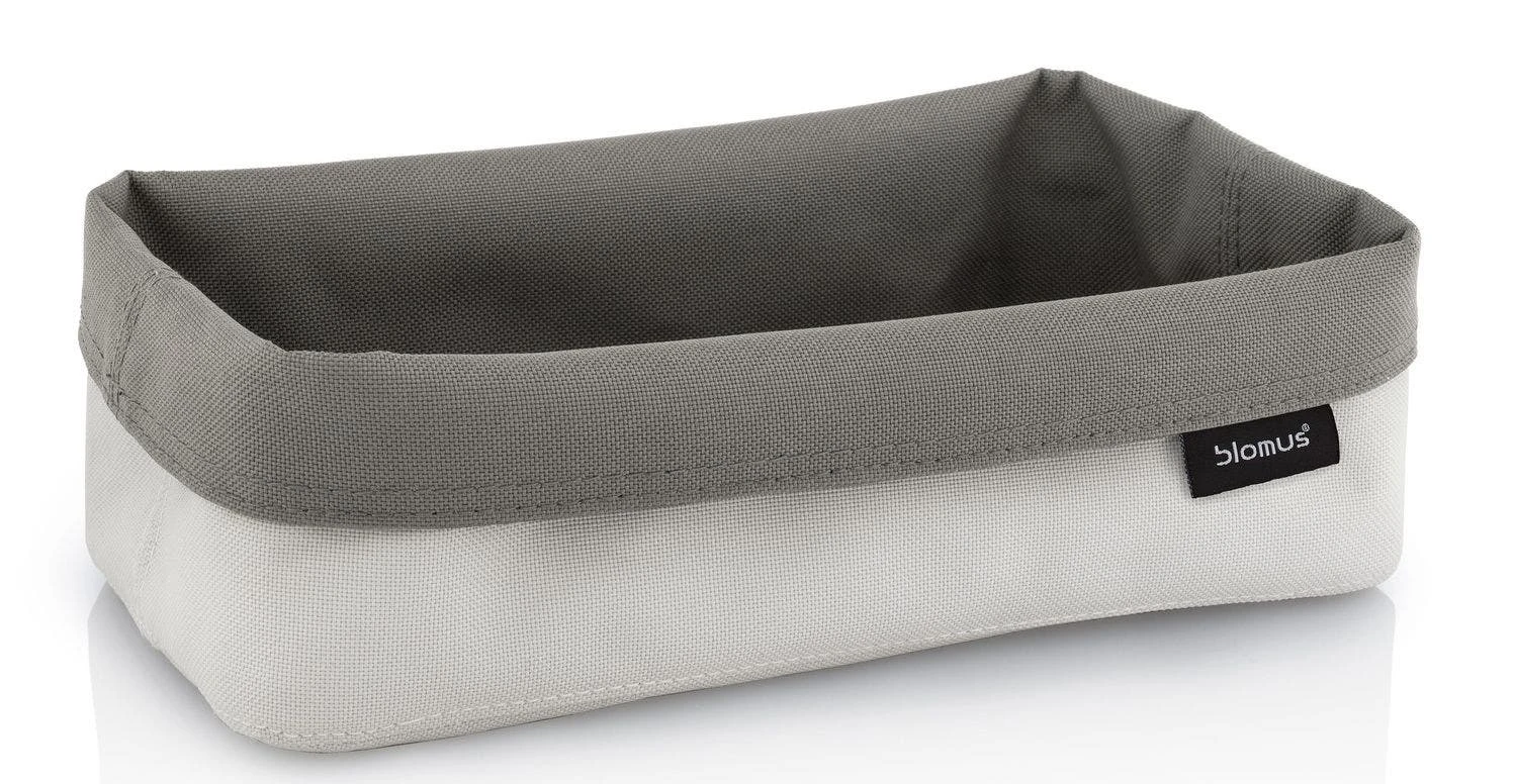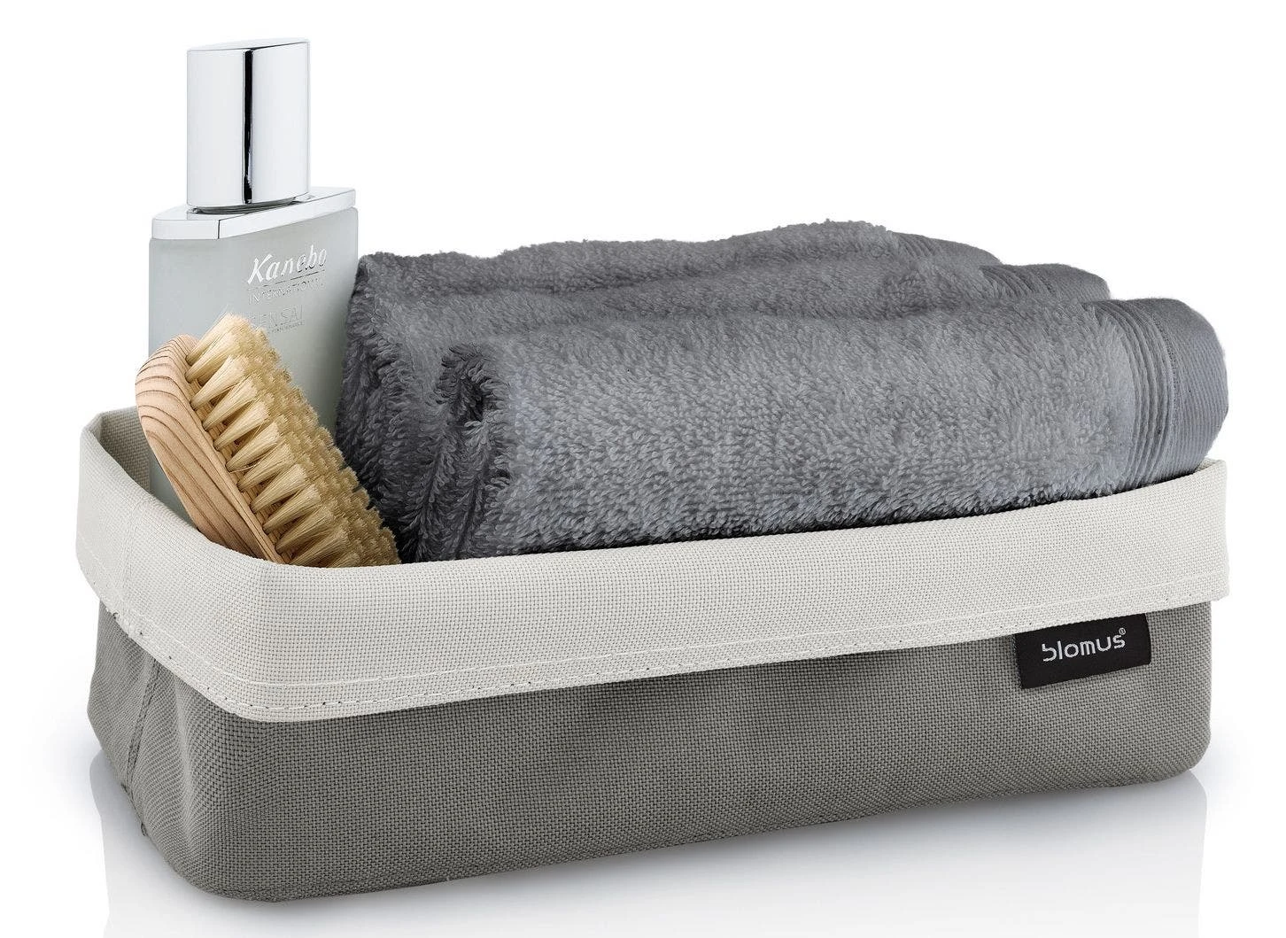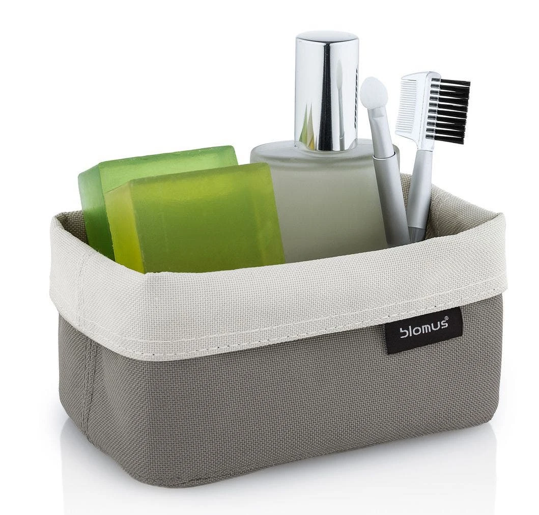 Blomus Storage Basket is reversible and washable canvas. Perfect for storing toiletries and other items on the countertop or closet shelf. Goes perfectly with other blomus ARA bath items