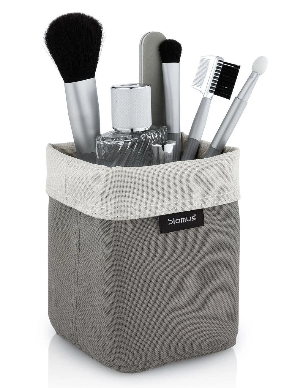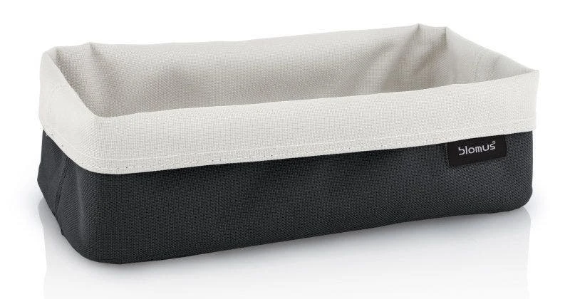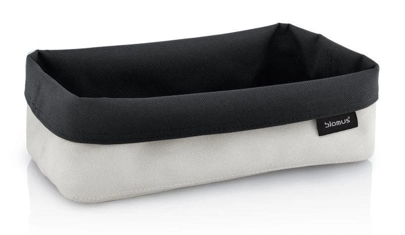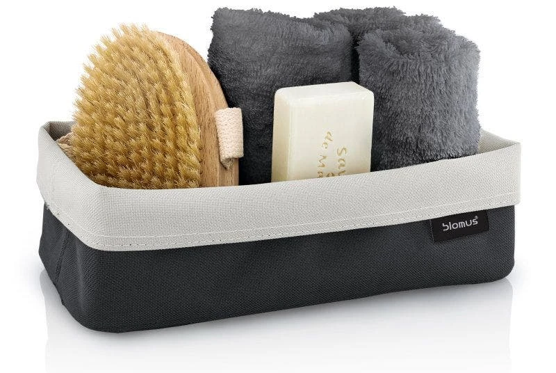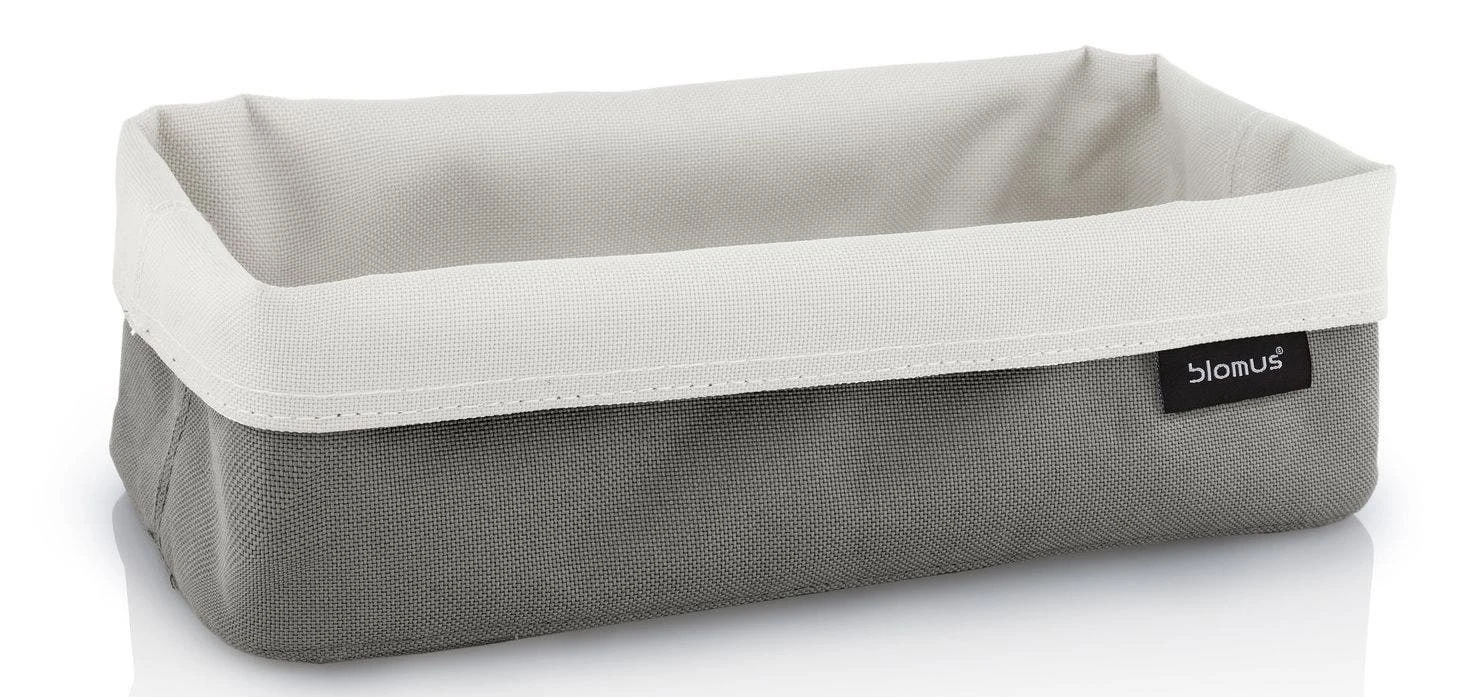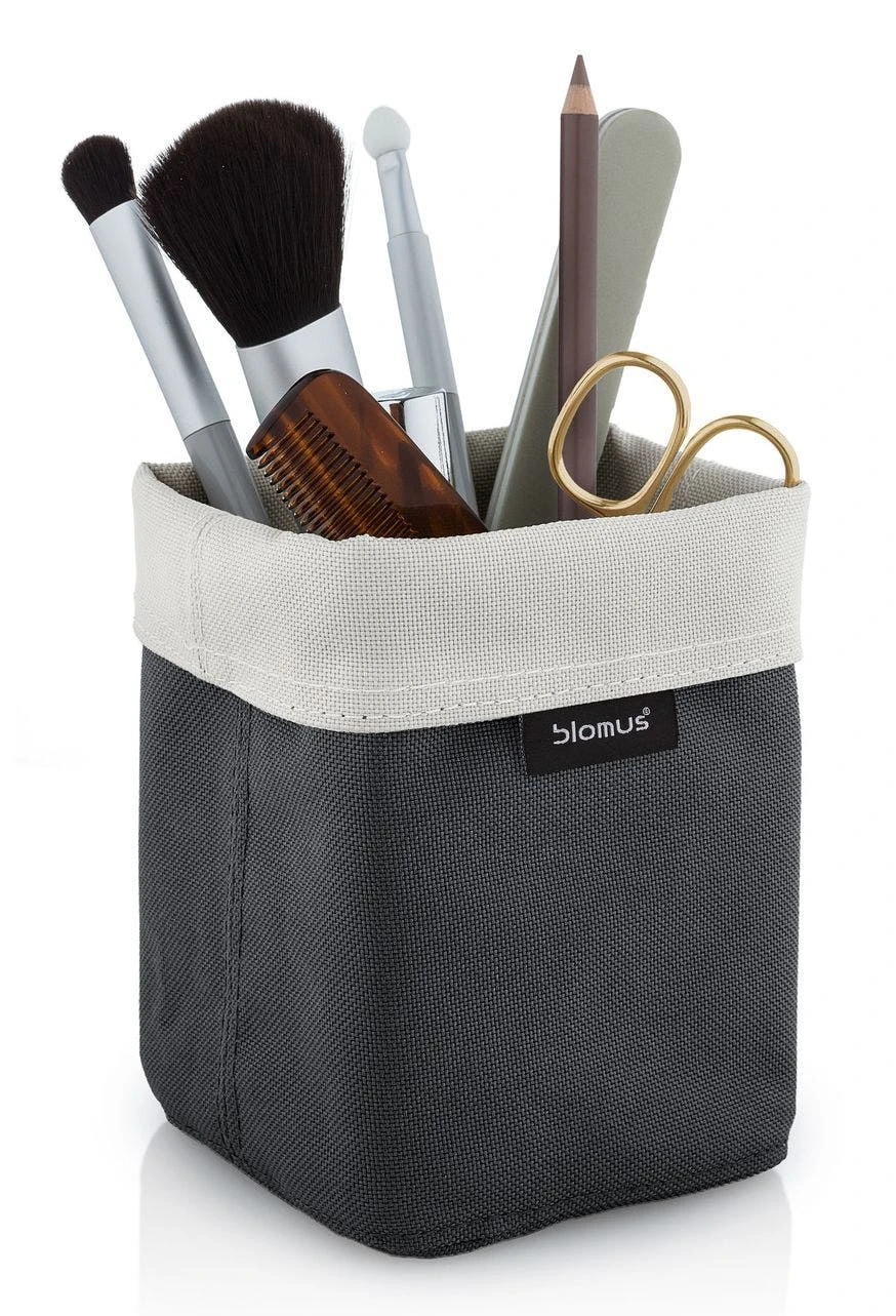Blomus Storage Basket is reversible and washable canvas. Perfect for storing toiletries and other items on the countertop or closet shelf. Goes perfectly with other blomus ARA bath items