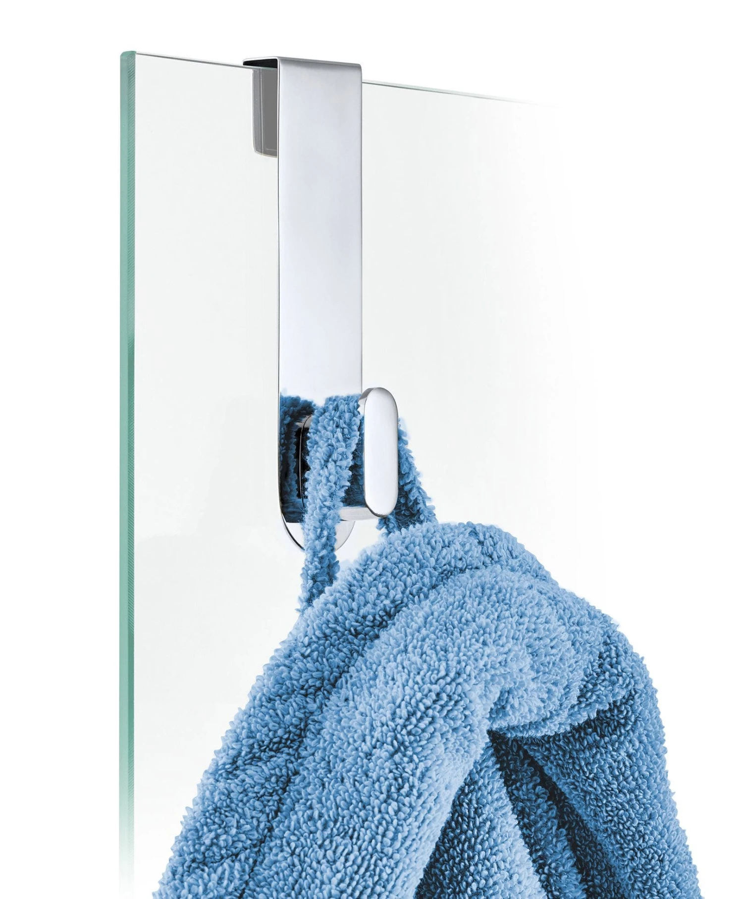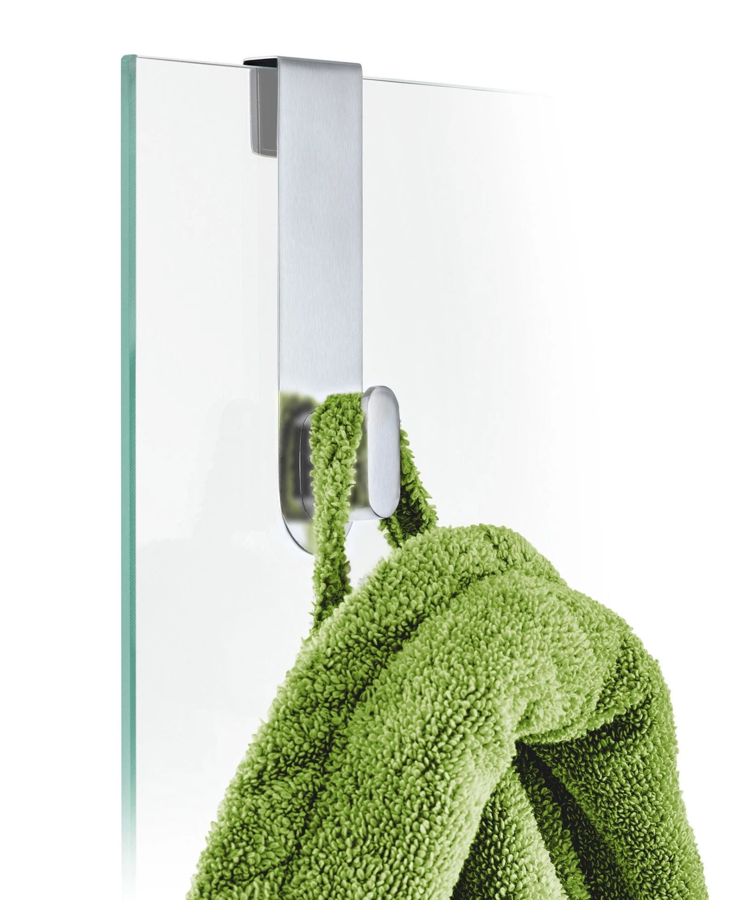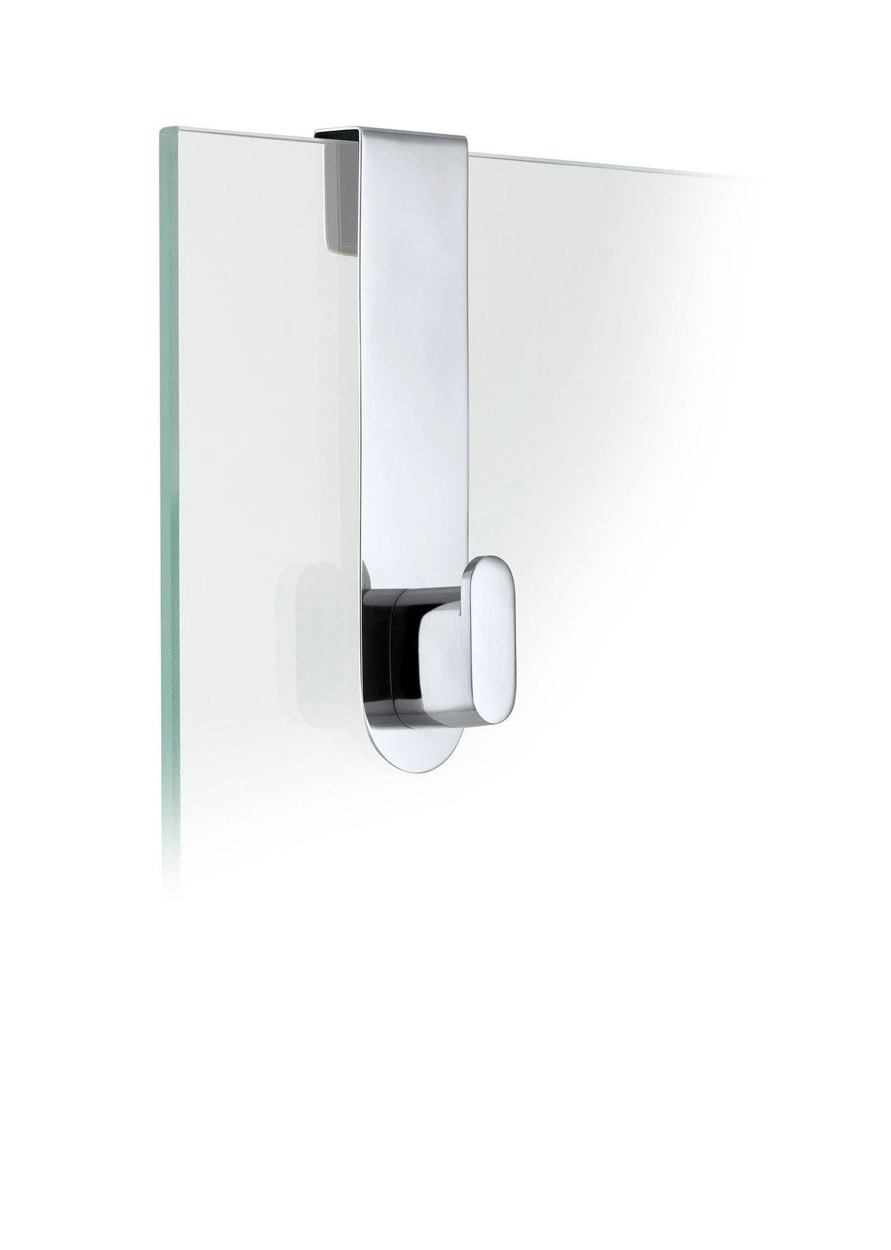 The blomus stainless steel glass door shower hook for over the door from the AREO collection is easy to slide on and off of your glass shower wall or door.