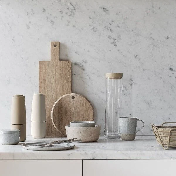Blomus oak cutting boards and trays are made of untreated oak. This makes for a very natural and classic appearance. blomus recommends the wood be treated with oil if the item is used with foods to protect the wood against discoloring and prevent food odors and bacteria from attaching themselves to the surface.