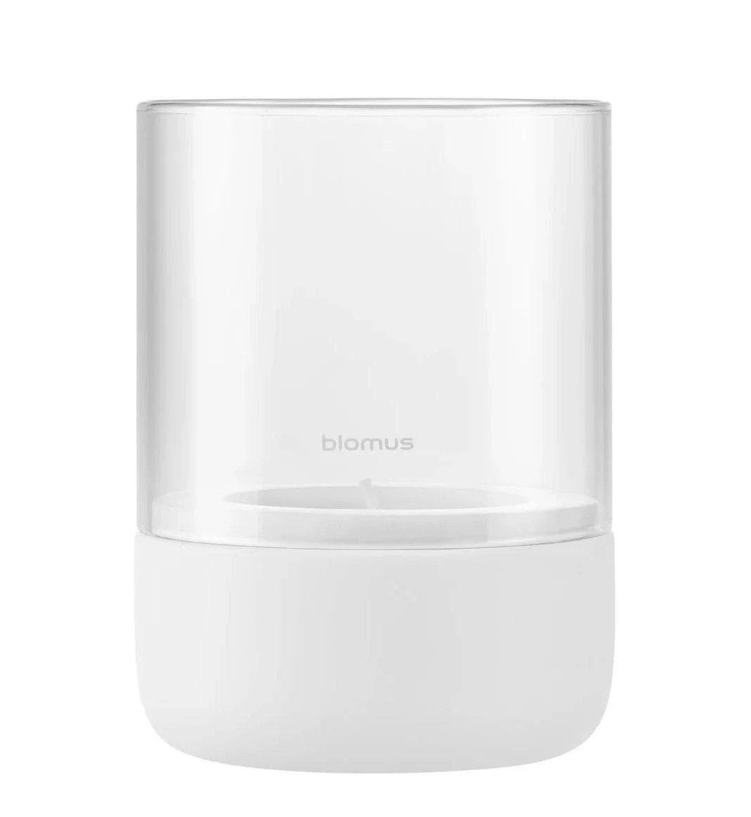 - Lily White features a white concrete base and clear glass