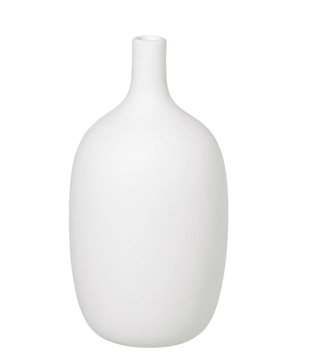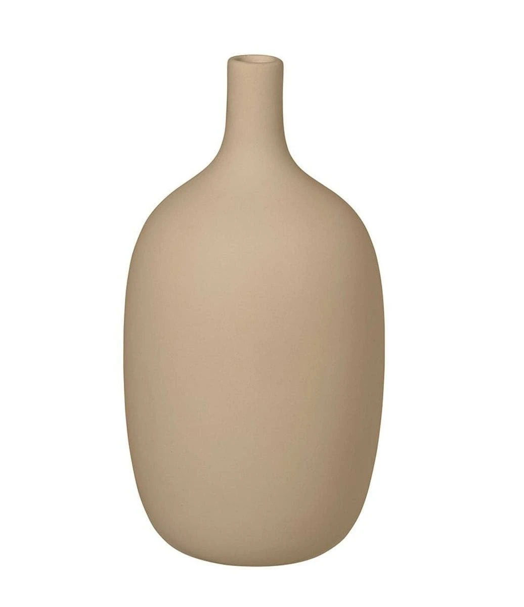 The surfaces of the CEOLA series are made of resistant ceramics, glazed but left a bit course. Small bumps, slight color variations and visible lines are the result of the production process and add to the natural look as well as the unique character of every single vase. Gather a few of your favorite flowers – or simply collect wild twigs that add a rustic, natural feel to your interior décor.