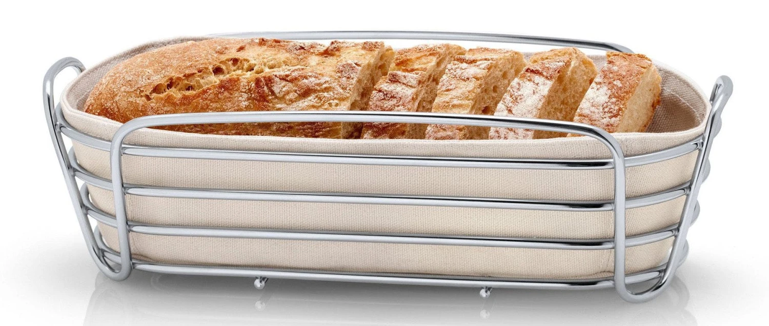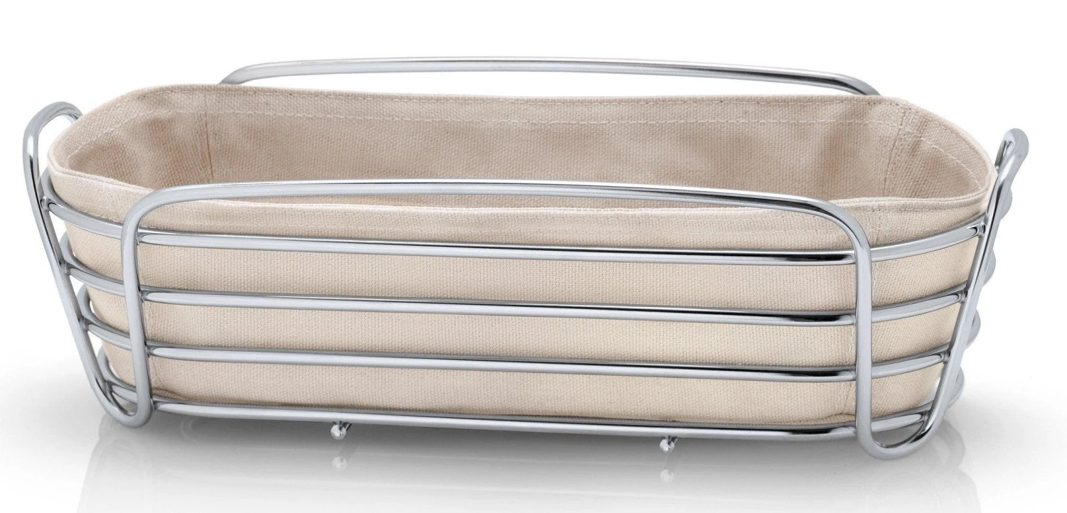The blomus chrome plated decorative wire serving basket long is both decorative and functional. With removable fabric liners you can use for more than just serving bread. This serving basket is made from chromed metal wire with a cotton fabric insert.