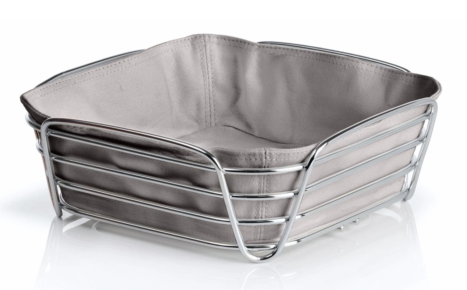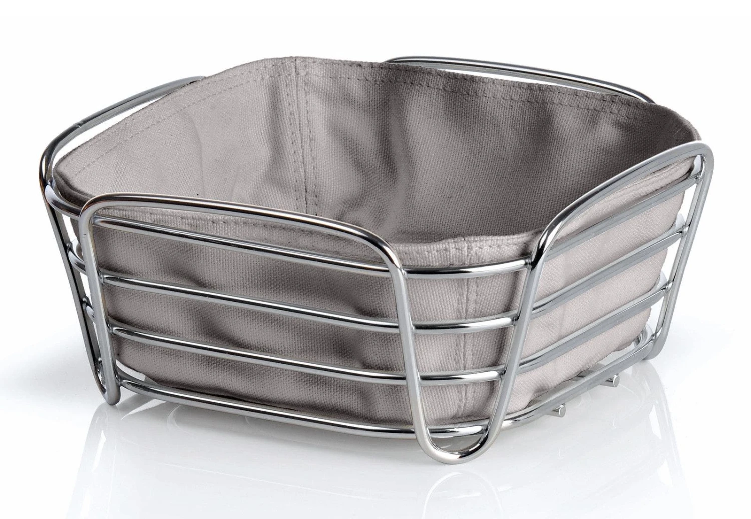 The blomus chrome plated decorative wire serving basket is both decorative and functional. With removable fabric liners you can use for more than just serving bread. This serving basket made from chromed metal wire with a colored fabric insert.