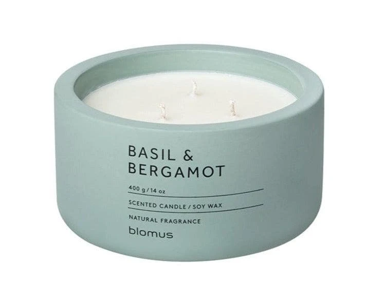 Blomus Scented Candle in Concrete Container – 3 Wick each candle feature a unique fragrance in a beautifully colored concrete container.