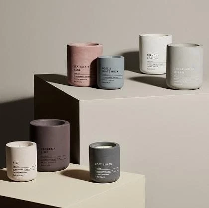 Blomus Scented Candle in Concrete Container – each candle features a unique fragrance in a beautifully colored concrete container.