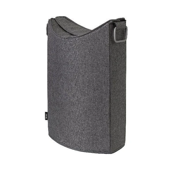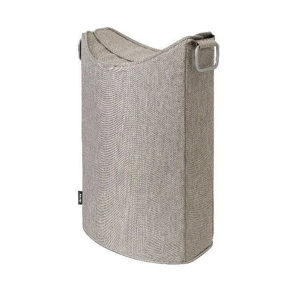 Foldable Laundry Bin – Frisco Lounge is space-saving and elegantly modern. This storage solution is a great alternative to traditional laundry bins. The lean oval shape fits easily into unused corners and niches. Constructed of moisture-resistant synthetic fibers and matching powder coated steel handles. The side handles make it easy to carry to the laundry room or laundromat. Melange (mixed) fabric threads lend a lounge feel that is indicatave of mid-century modern. Overlapping lid keeps laundry out of site.