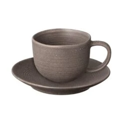KUMI Stoneware Coffee Cups With Saucers – Set of 2 – add to the beauty of a great breakfast coffee with friends. The KUMI tabletop range features typical Japanese shapes in natural colors, and in additional to typical tabletop items. KUMI is created with the Japanese process of reactive glazing, which comes out different with every firing and reacts to the slightest variations of oxygen in the kiln.