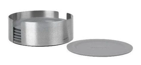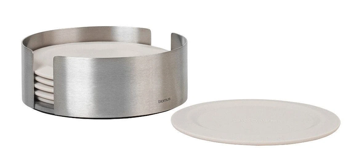 The blomus Silicone Coasters with Stainless Steel Holder come as a set of 6 and feature a circular shape to accommodate glasses well. The silicone coasters are stored, ready to use, inside the stainless steel tray.