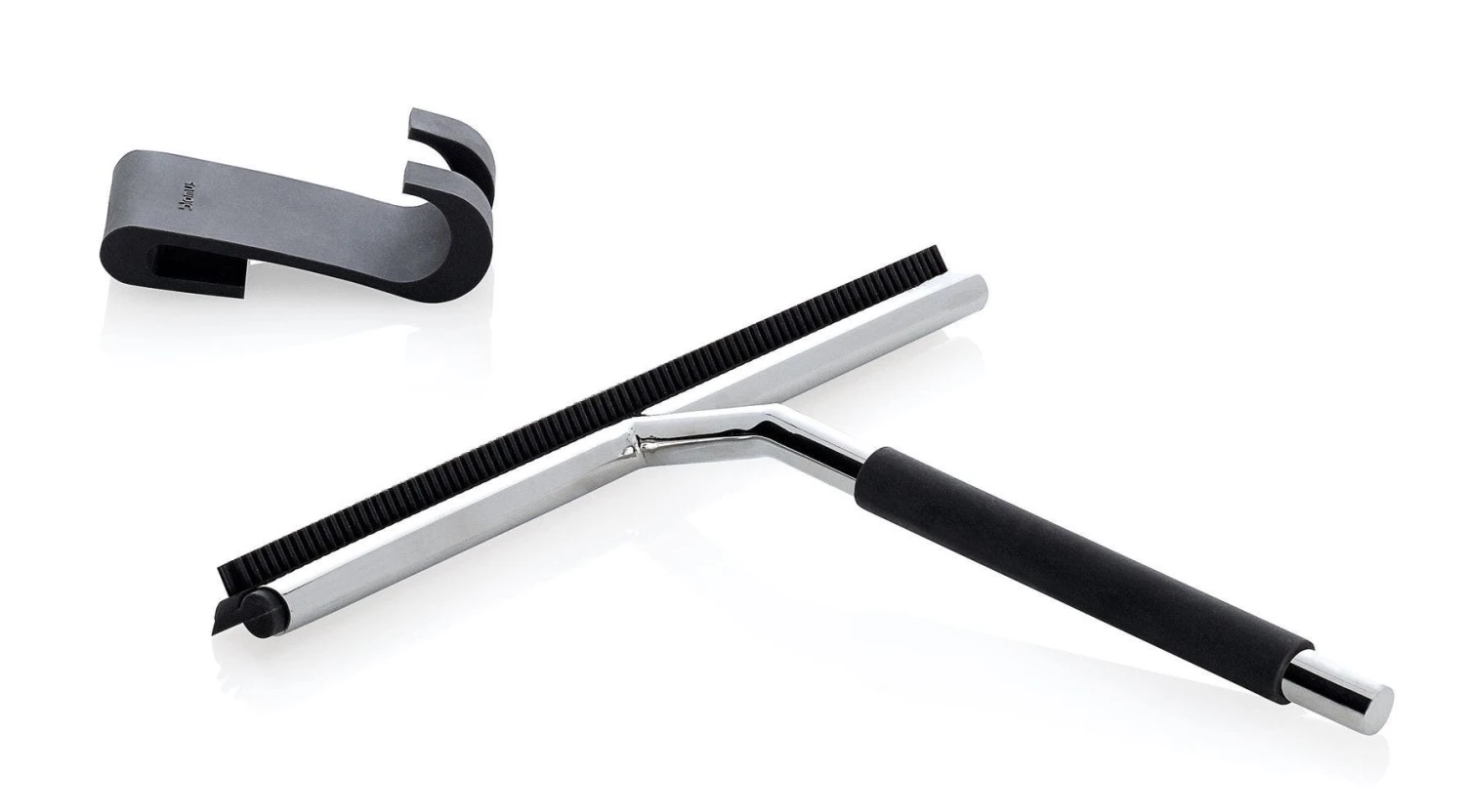 Keep your shower clear and clean with this blomus Shower Squeegee with Hanger. Features silicone bristles for areas that require a little scrubbing. The flip to the squeegee and wipe away. Always accessible with the over-the-glass hanger included.