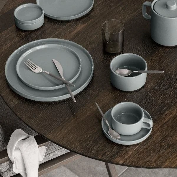 MAXIME Flatware Set – 16 Piece, with its slender silhouette, understated colors and softly curved details, is a beautiful interpretation of a tableware classic, designed by Theresa Rand. MAXIME is created with the humble ambition to please the eye as well as stand the test of daily use. Thanks to the tactile resin handles, the pieces sit comfortably in the hand with a beautiful stainless steel counterweight utensil at the top. The handles color-coordinate with the blomus range and are made of a combination of matt brushed stainless steel and a synthetic resin, POM (polyoxymethylene), which is used to produce precision parts.