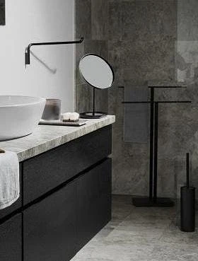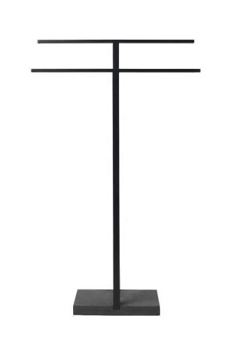 Blomus Free Standing Towel Rack – Black with weighted polystone base is a beautiful way to hang bathroom towels without damaging walls. It is also an invaluable pool/hot tub accessory. The dark, heavy polystone base offers a firm stand and adds elegance. Great solution when wall-mounted towel rails are not an option.