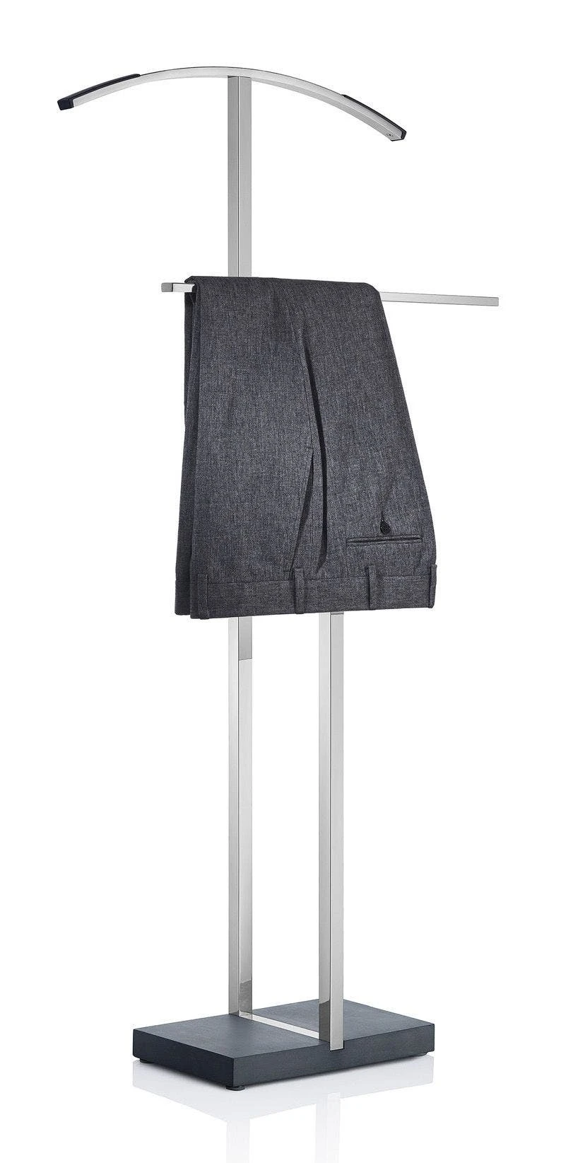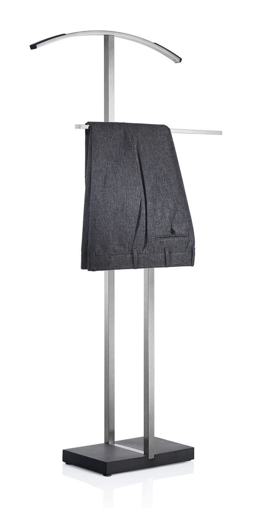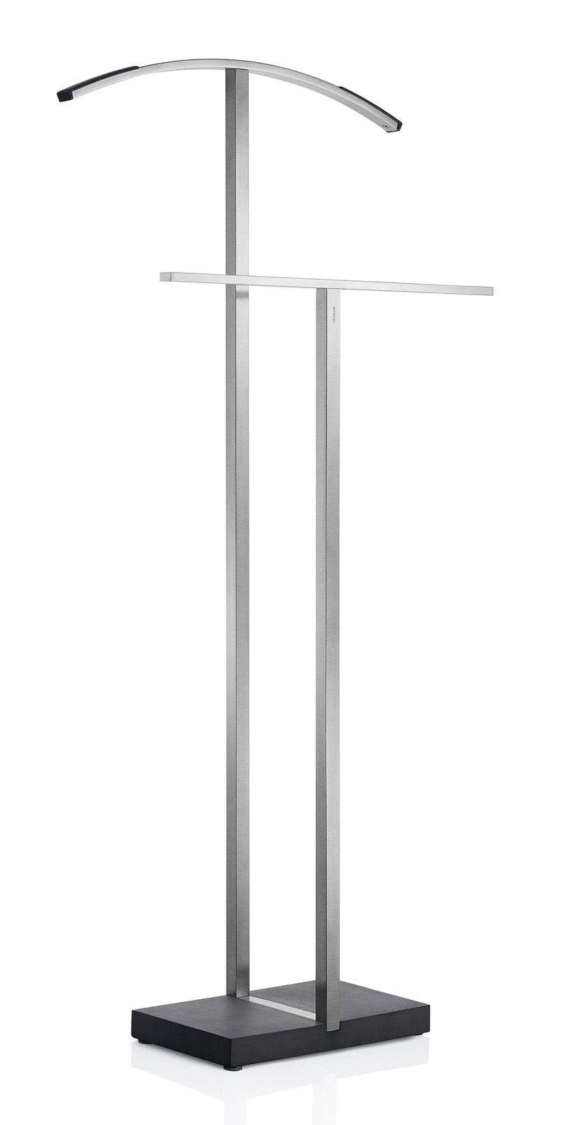 Blomus Menoto Wardrobe Valet combines a modern design with a traditional piece of furniture. The upper curved arch is ideal for a jacket or blazer. The lower rod is 9 1/2” lower providing a place for slacks.