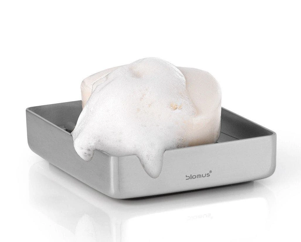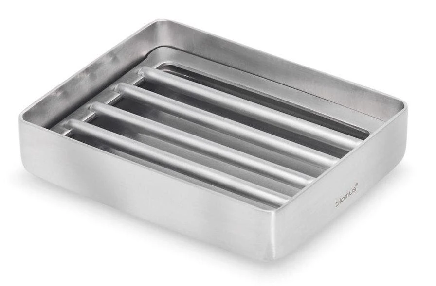 Stainless steel soap dish -Nexio by blomus features a slat design which allows bar soap to dry quickly. This soap dish comes in either matt or polished finish. Surplus water will drain through the bars which can easily be removed for cleaning.