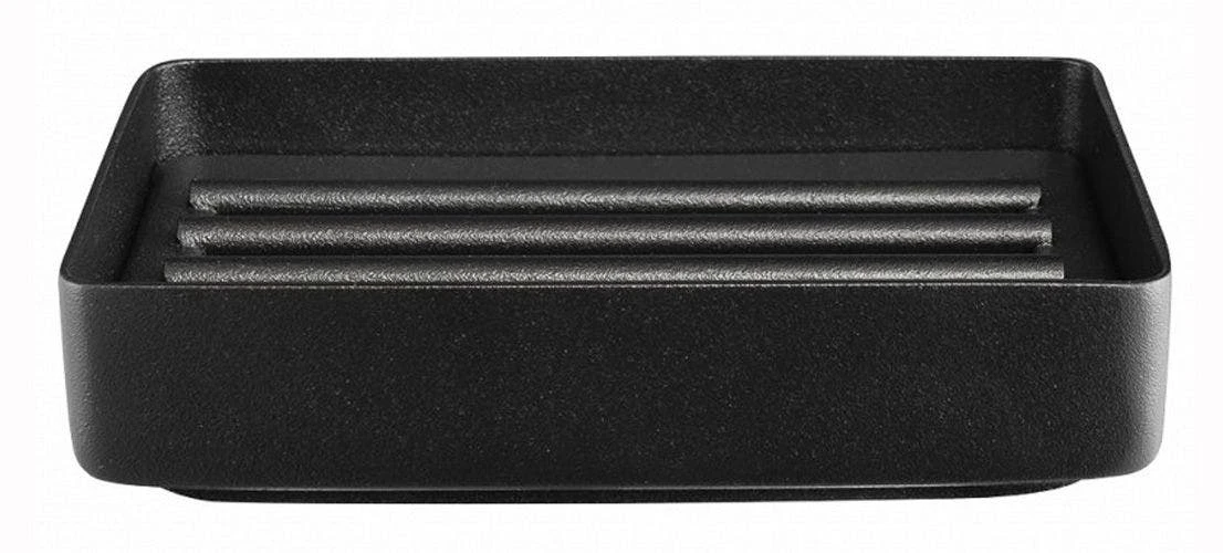 NEXIO Stainless Steel Soap Dish – black by blomus features a slat design which allows bar soap to dry quickly. Surplus water will drain through the bars which can easily be removed for cleaning.