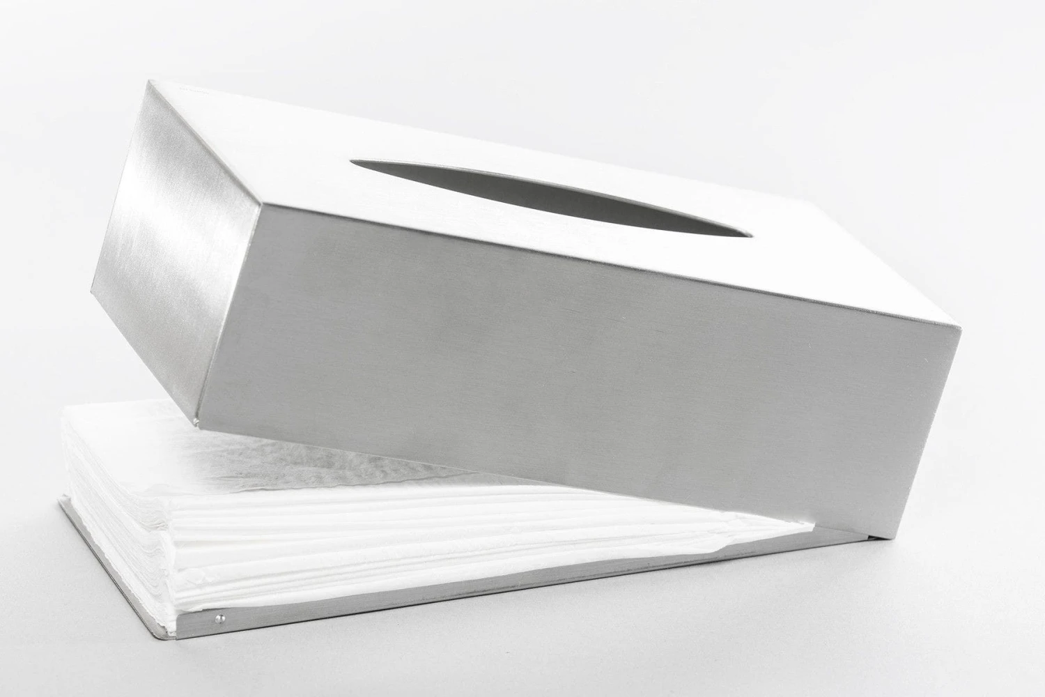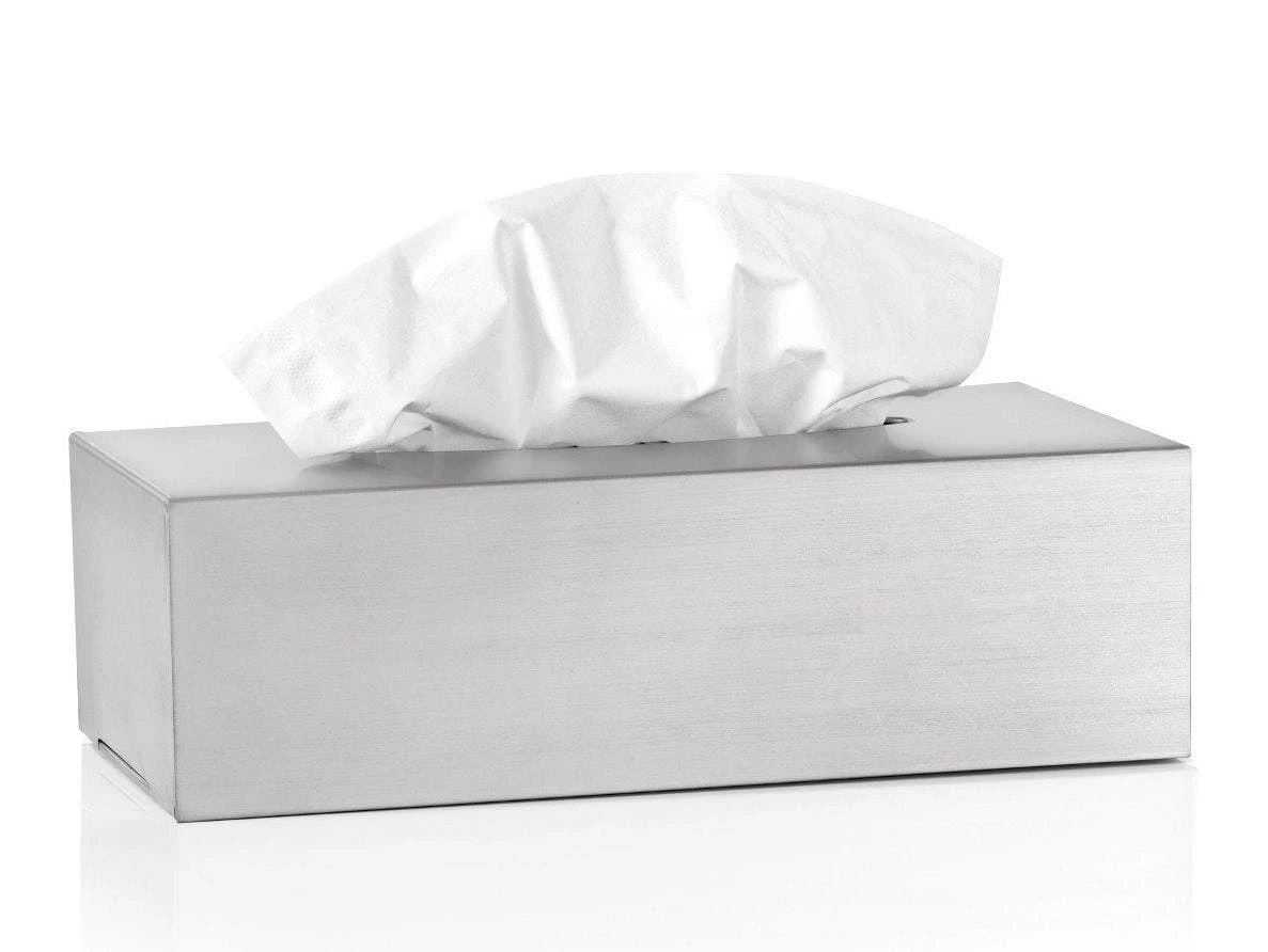 The blomus stainless steel tissue holder is designed to hold tissues only (not tissue box). Simply remove tissues from store box and place inside.