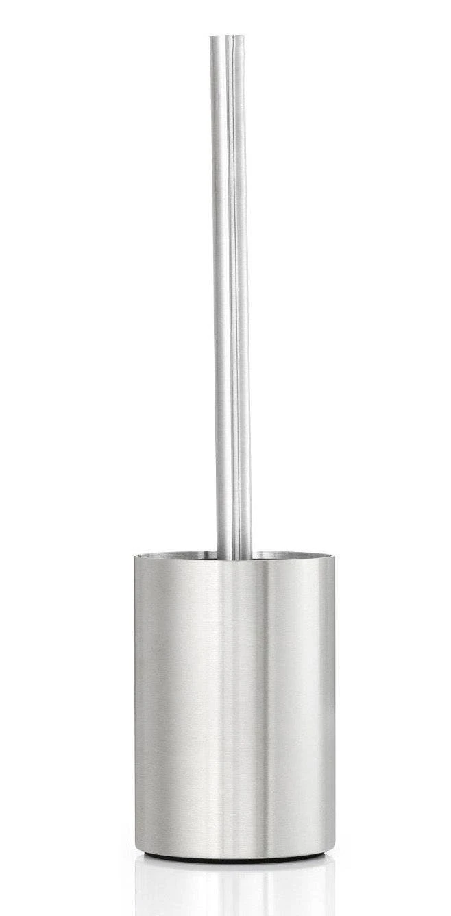 Stainless steel toilet brush and holder by blomus coordinates with other Nexio collection of soap dispenser, hooks, towel rails, and tissue paper holder. The slim style is space saving and it is perfect for smaller bathrooms. Includes black plastic tray which is removable for easy cleaning.