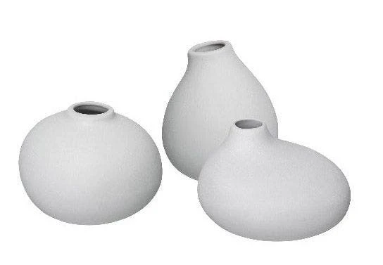 The blomus NONA Porcelain Mini Vases – Set of 3 are a beautiful, quirky design of modern elegance. When flowers meet this amazing matte, raw, unglazed porcelain surface the result is somehow subtle and spectacular all at the same time. Each vase features a modern shape that, when placed together, create an eye-catching ensemble.
