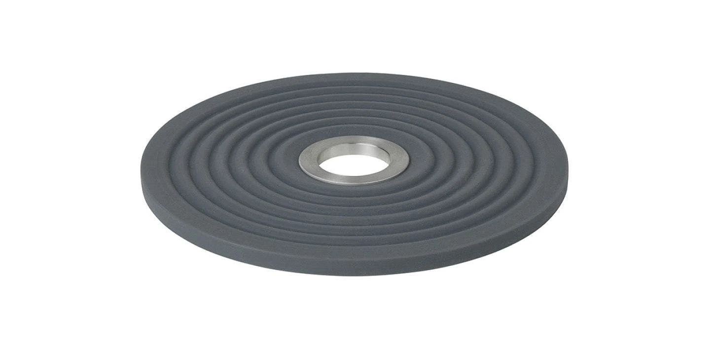 The blomus Silicone Trivet – Round features stainless steel accent. Silicone material provides a non-slip trivet. Soft to the touch, it will protect any hard surface from pots or serving pieces. Can easily be cleaned by rinsing it under water.