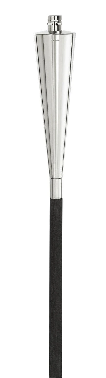 The polished stainless steel garden torch is operated with lamp oil and is versatile in the garden with the ground stake. The safety lock not only prevents the leakage of the oil lamp but also the accessibility of children to the oil-soaked fiberglass wick.