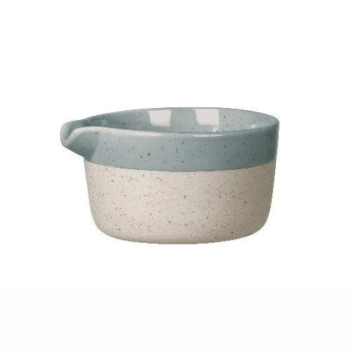 Soft and rough – like water flowing over sand. The SABLO ceramic milk jug is made of a mixture of coloured clay, quartz, minerals and oxides. The lightly speckled look perfectly complements the colour combination of grey and beige tones, and is texturally reinforced by the partial glaze. Due to variations in colour, each piece is one-of-a-kind with a unique hand-crafted appearance.