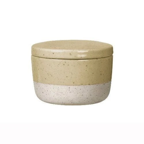 Soft and rough – like water flowing over sand. The SABLO ceramic sugar bowl with lid is made of a mixture of coloured clay, quartz, minerals and oxides. The lightly speckled look perfectly complements the colour combination of grey and beige tones, and is texturally reinforced by the partial glaze. Due to variations in colour, each piece is one-of-a-kind with a unique hand-crafted appearance.