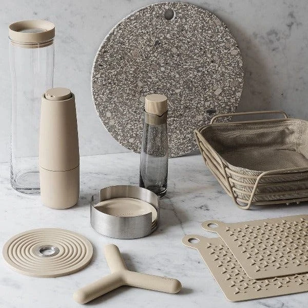 - Stainless Steel, Clear and Smoked Glass, Silicone