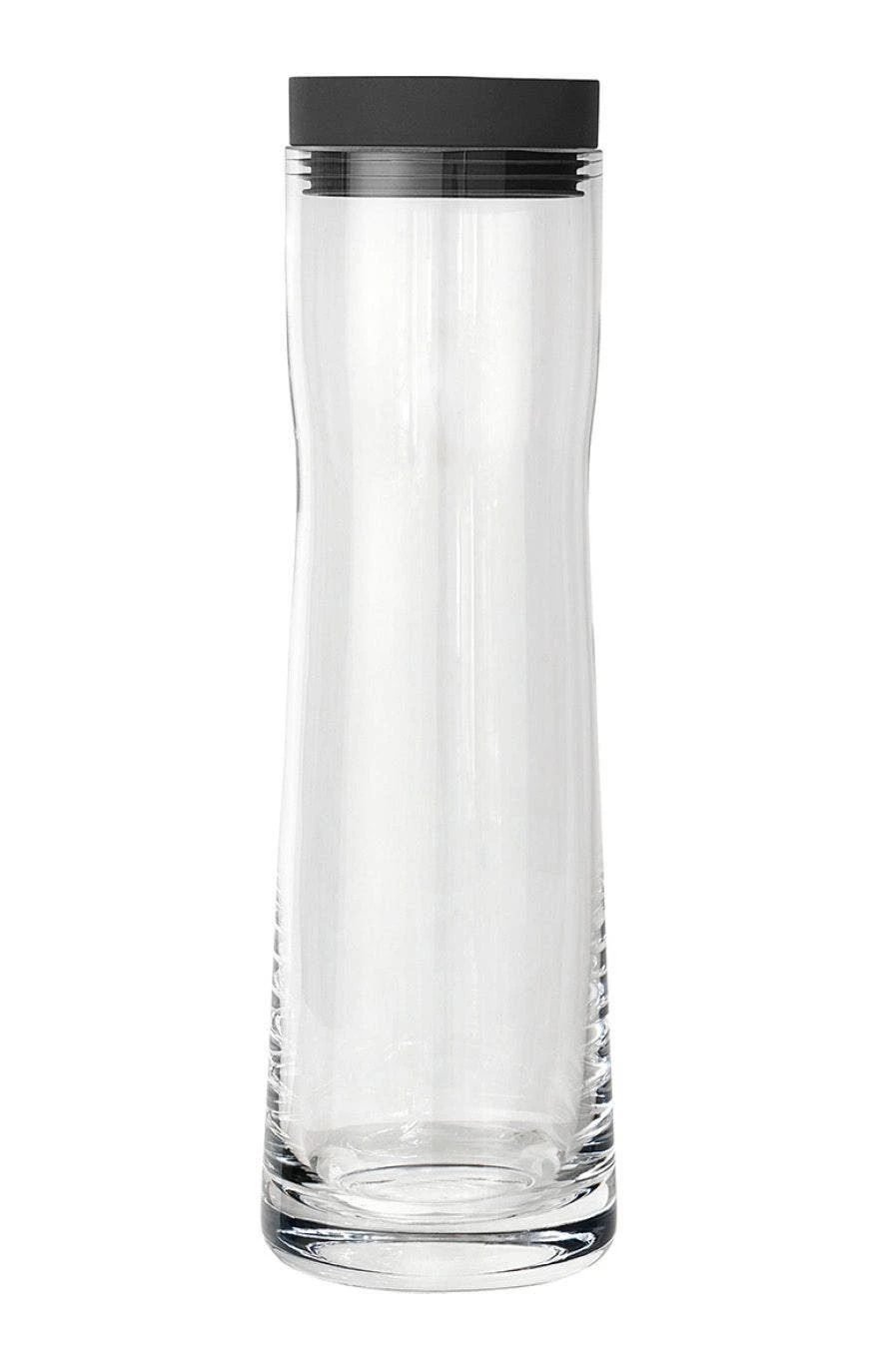 The Splash Water Carafe 34 oz (1 Liter) With Self-Closing Lid features just the right design for serving water in style. The curvy silhouette of the glassware is topped by an easy to care for silicone lid. The lid also serves to retain ice cubes in the carafe.