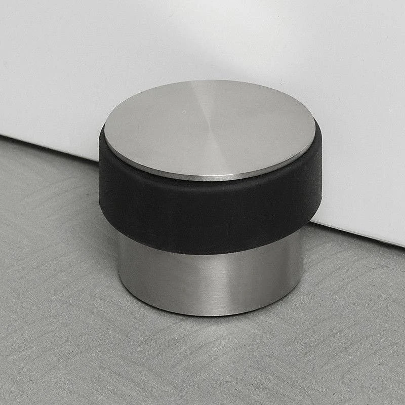 Stainless steel door stop by blomus weighs 4 lbs and features an anti-scratch base. This doorstop is designed to hold heavy doors. It weighs 2 kg and has a rubber base to prevent scratches on the flooring.